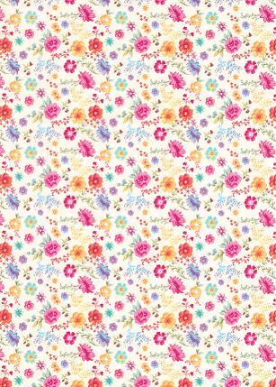 Der gemusterte Transparentpapierbogen von Ursus Motiv 01 Romantic Garden ist mit verschiedenen Blumen einseitig bedruckt.
