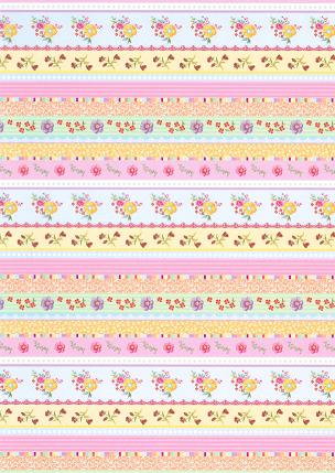 Der gemusterte Transparentpapierbogen von Ursus Motiv 03 Romantic Garden ist mit verschiedenen Blumenborten einseitig bedruckt.