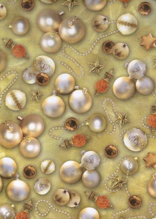 Auf diesem schönen Transparentpapierbogen Weihnachtszauber von Ursus sind Motive Kugeln in gold und perlmutt auf hellgrünen Hintergrund einseitig bedruckt.