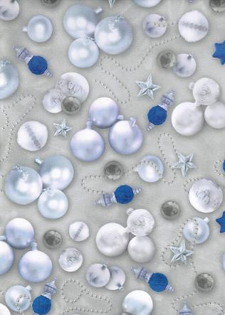 Auf diesem schönen Transparentpapierbogen Weihnachtszauber von Ursus sind Motive Kugeln in weiss und blau auf silbernen Hintergrund einseitig bedruckt.