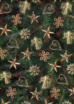 Auf diesem schönen Transparentpapierbogen Weihnachtszauber von Ursus sind Motive Strohsterne in natur auf dunkelgrünen Hintergrund einseitig bedruckt.