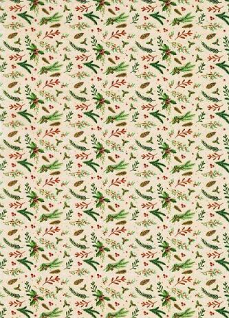 Auf diesem Transparentpapier von Ursus aus der Serie Weihnachtszauber sind verschiedene Tannenzweige und Myrtenzweige in grün auf cremefarbenem Untergrund einseitig aufgedruckt.