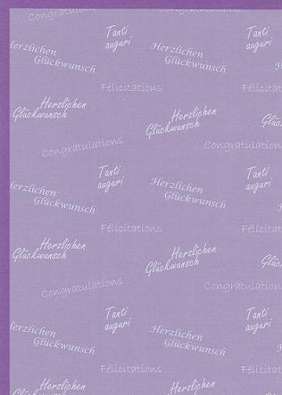 Dieses weiße Transparentpapier von Ursus wurde mit der Schrift Herzlichen Glückwunsch, auch in anderen Sprachen, einseitig bedruckt.