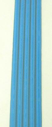 Es befinden sich 5 Stück der runden metallic blauen Wachsstreifen auf einer Klarsichtfolienplatte.