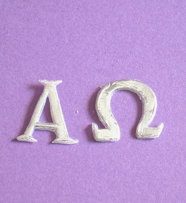 Produkt: Wachsornament Alpha und Omega silber 20 mm