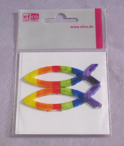Die Wachs-Fische Regenbogen von Efco sind ca. 70 mm lang, ca. 20 mm hoch und ca. 2 mm dick.