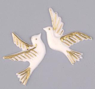 Produkt: Wachsornament Taupenpaar weiß gold 2 Stück
